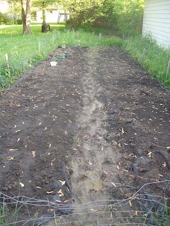 Last year, the garden quickly got overrun with weeds and for two people who work full time, it was too much to keep ahead of. This year we're trying Weed Block. We put down the weed block tarp and then (mostly for aesthetic purposes) covered it with more soil. I don't think that is actually necessary, but I'd rather look at soil than at tarp with plants poking through.