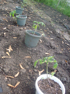 We were able to fill the raised beds with veggies towards the end of May, but no luck with the in-ground garden. Our saplings were starting to look sad in the plastic containers that they were purchased in, so we decided to invest in lots and lots of little pots.