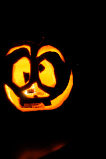 This year's jack-o-lantern dons an expression that Brandon and I lovingly call "the Lessman". Otherwise known as the inebriated, raised eyebrow, "let me tell you how it is..." look while struggling to keep both eyes open at the same time.
